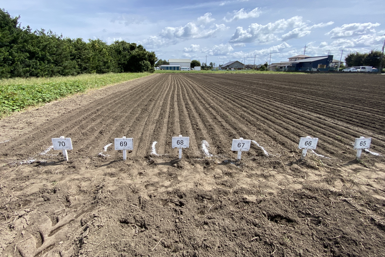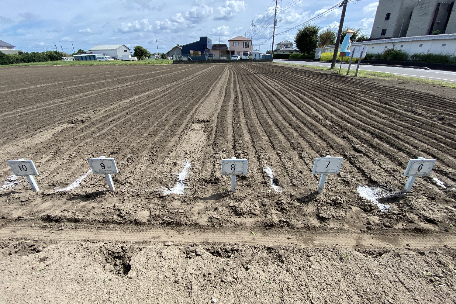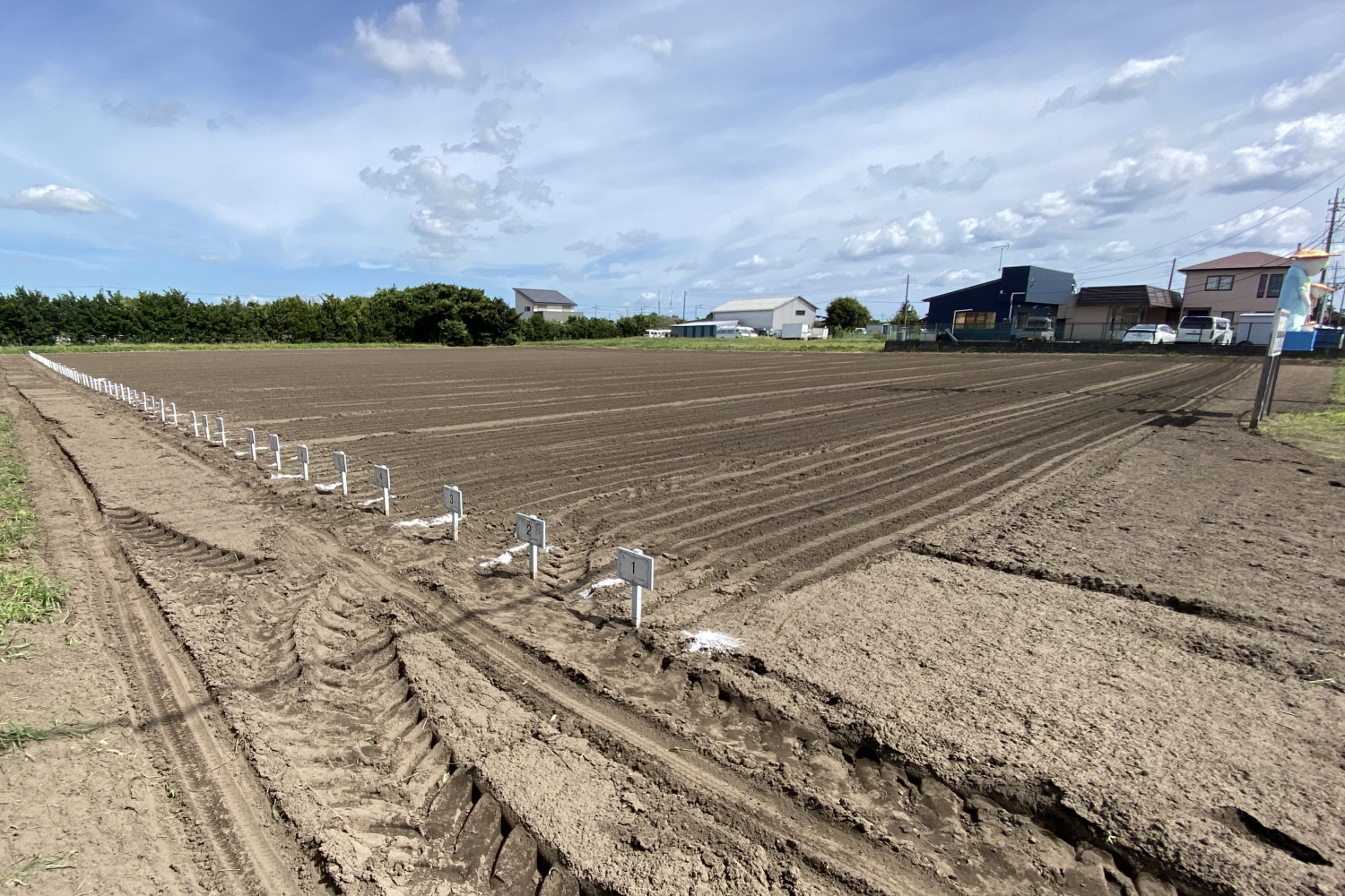 そのため長生村役場と相談の上、苦渋の選択ではありますがオーナー様の区画の再配置と拡張を行ない機械でまき直しを実施しました。