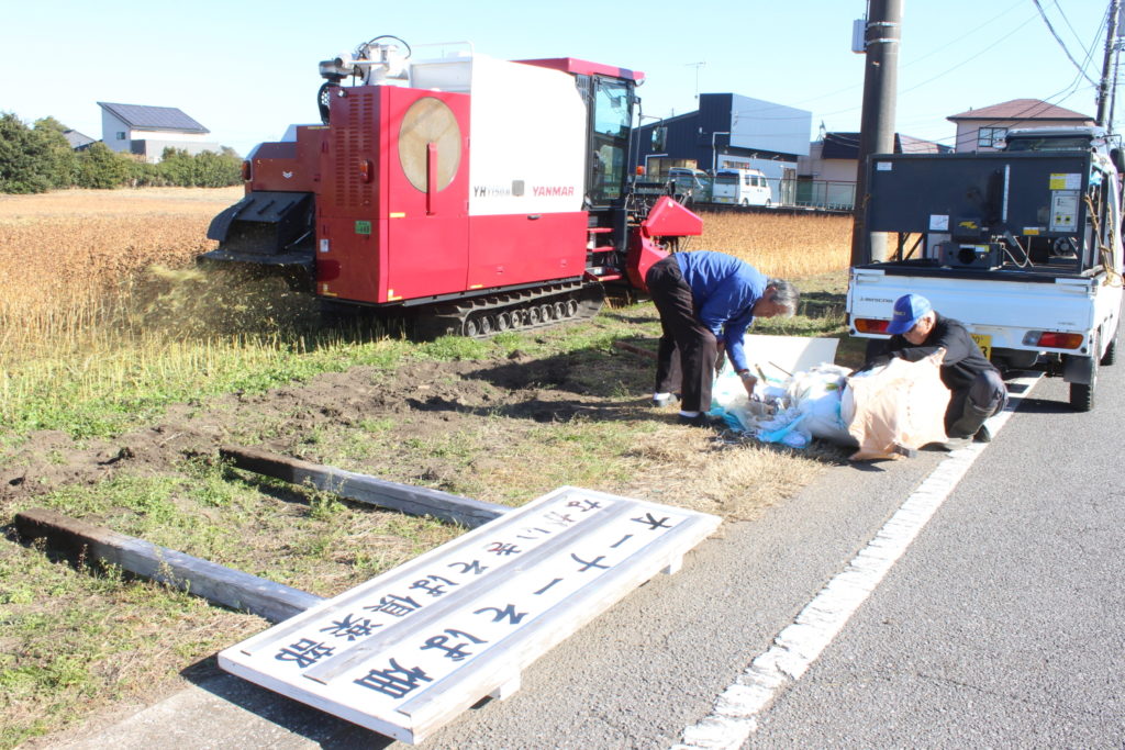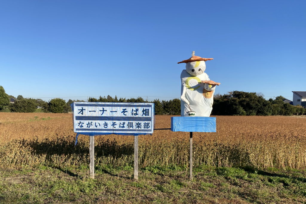 種まきから11週間、畑を見守ってきた「オーナーそば畑の看板」と「太陽くんのカカシ」は、本日でお役御免となりました。