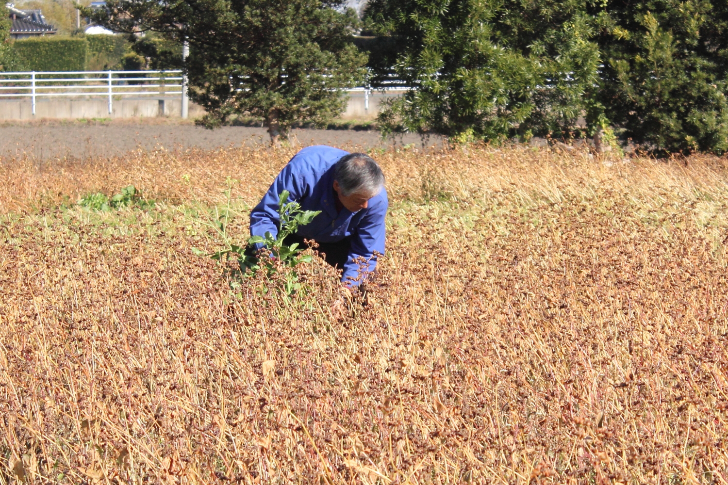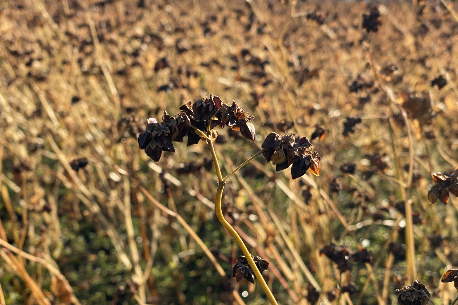 できればもう1週間おいてから刈り取りをしたかったのですが、霜が降りるとそばの品質が悪くなるため、思い切って刈り取りを行いました。