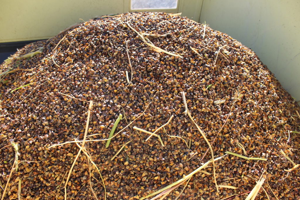 刈り取ったそばは、この後乾燥機で乾燥の工程に入ります。