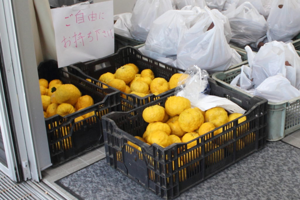 スタッフは前日に会場設営を行い、そば打ち体験当日のは朝8時に集合してオーナーの皆様をお迎えする準備を行いました。また、今回はオーナー特典の他に、オーナー様にさつまいもを1袋と、大ゆずのつかみ放題のプレゼントをご用意しました。