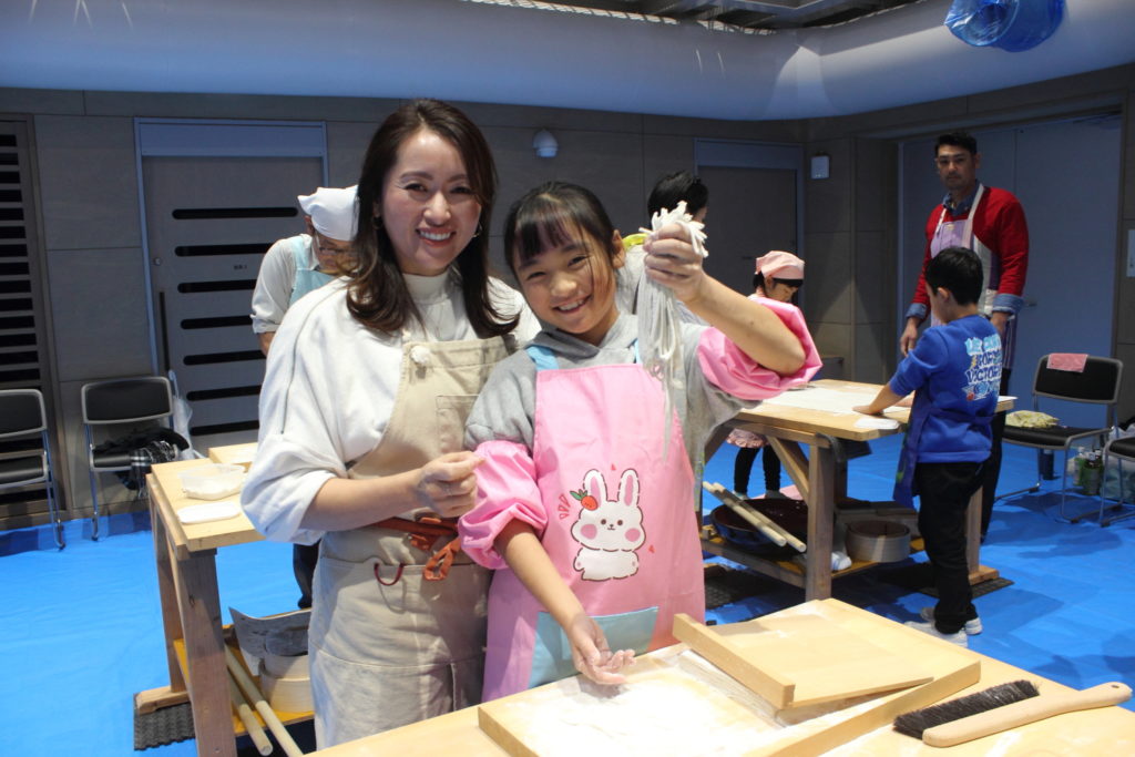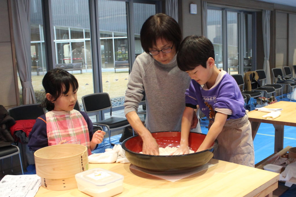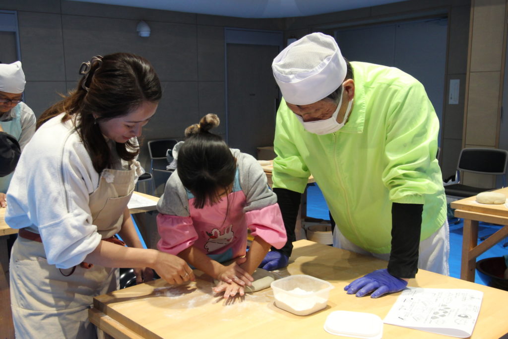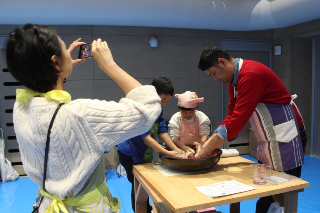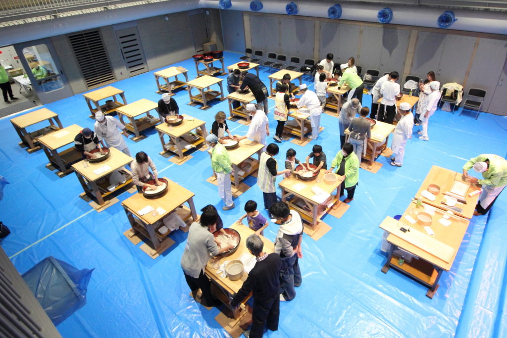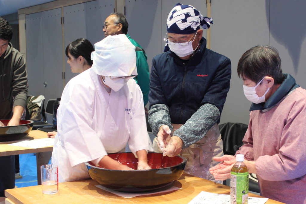 お手本実演が終わると、お待ちかねの「そば打ち体験」の開始です。