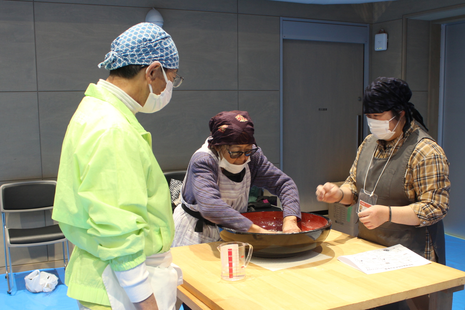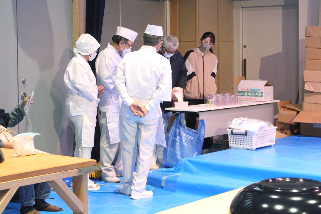 お手本を思い出しながら、手順書を見て戸惑いながら、そばの水まわしから行っていました。