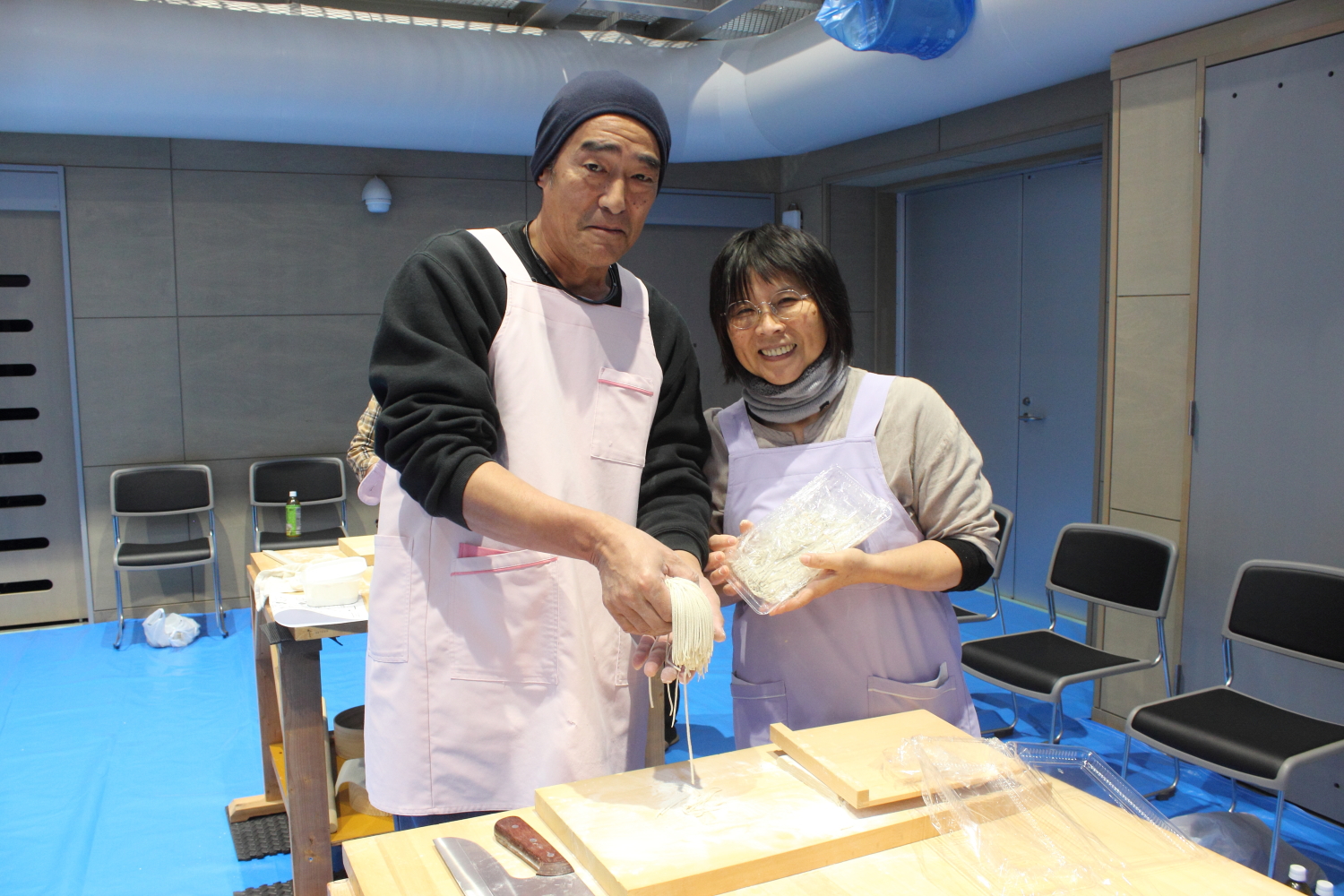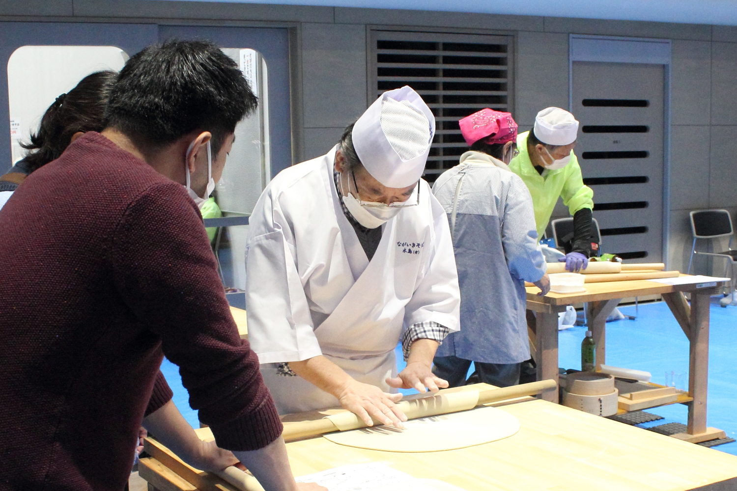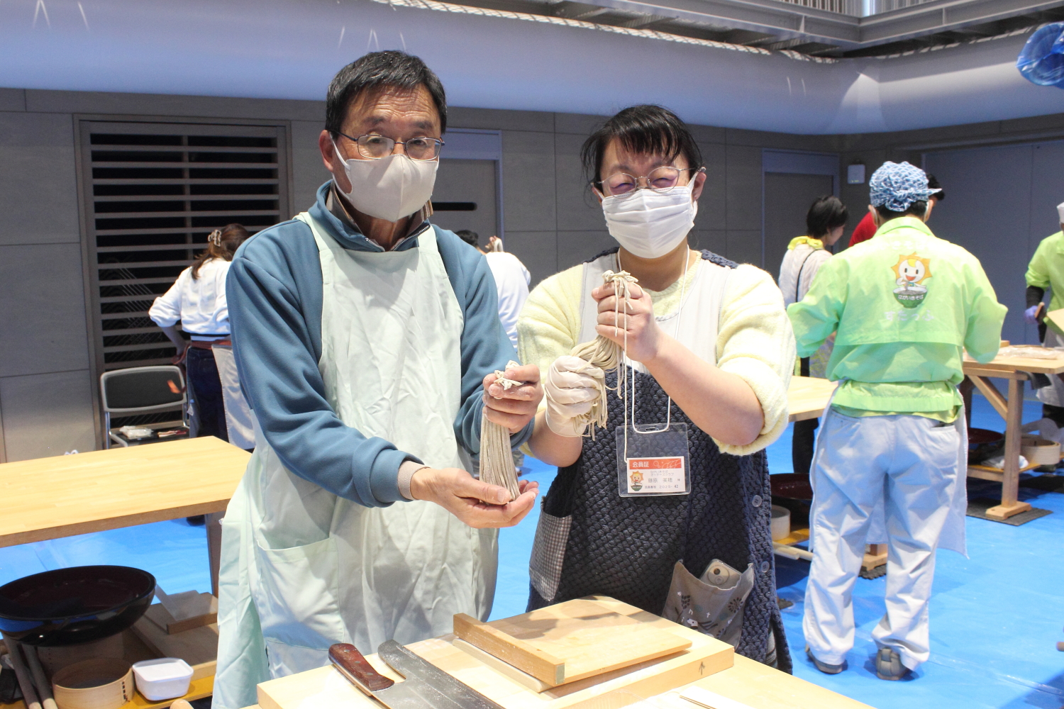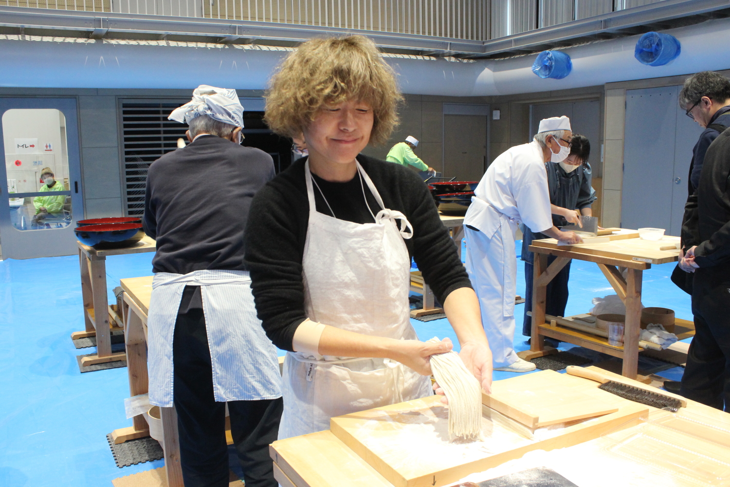 オーナー様が打ったできたてのそばを、スタッフがを心を込めて作り、その場で召し上がって頂きました。