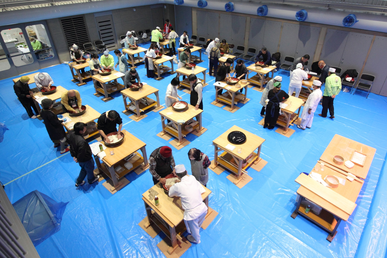 そば打ちの場所は自由なので、会場に到着順でオーナーの皆様がご希望の場所で「そば打ち体験」スタート!!